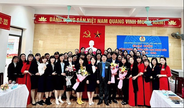 Đ/c Bùi Văn Biên – Chủ tịch Liên Đoàn lao động Huyện chụp ảnh lưu niệm với Công đoàn Nhà trường.