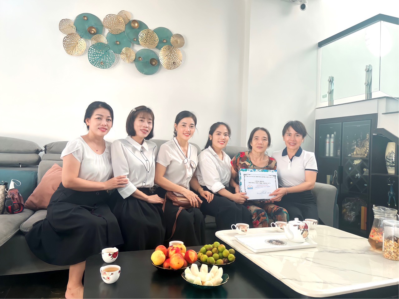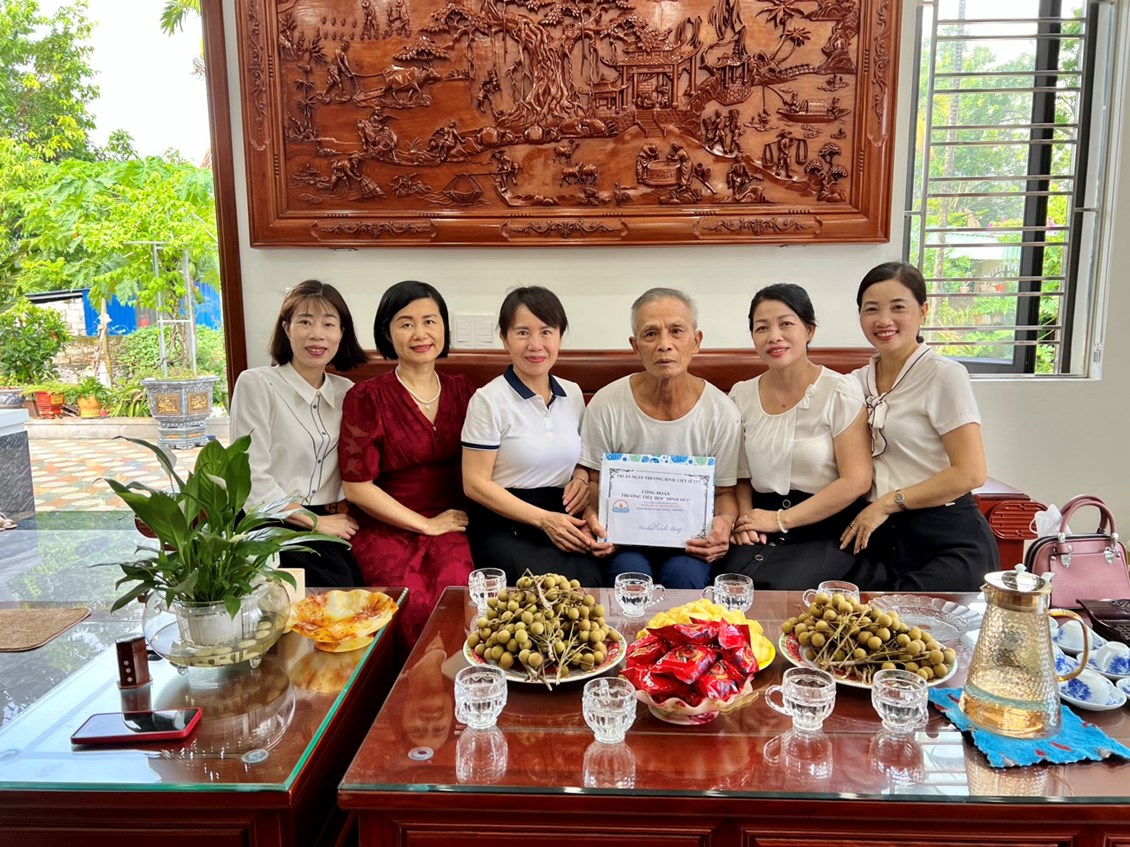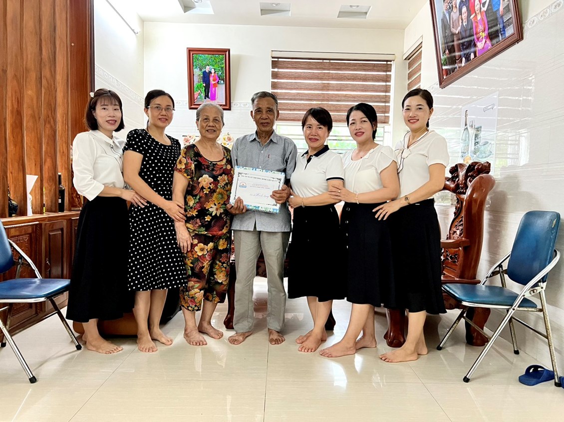 Các đồng chí đại diện Ban giám hiệu và Công đoàn nhà trường thăm, tặng quà vợ liệt sỹ Phạm Đình Châu (Xã Lâm Động - Thuỷ Nguyên – Hải Phòng).