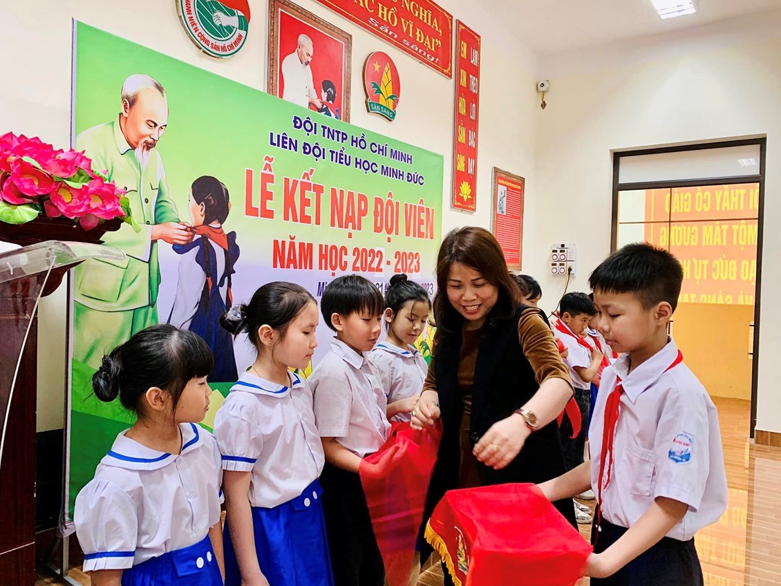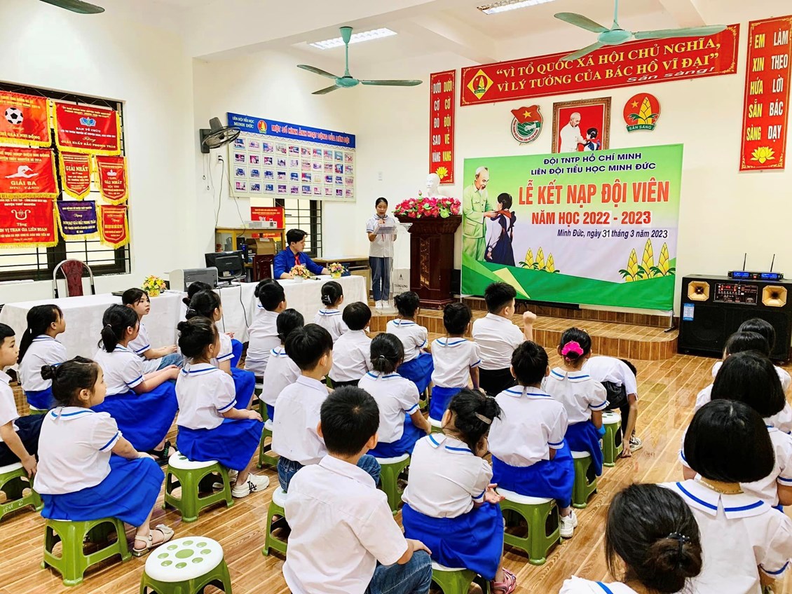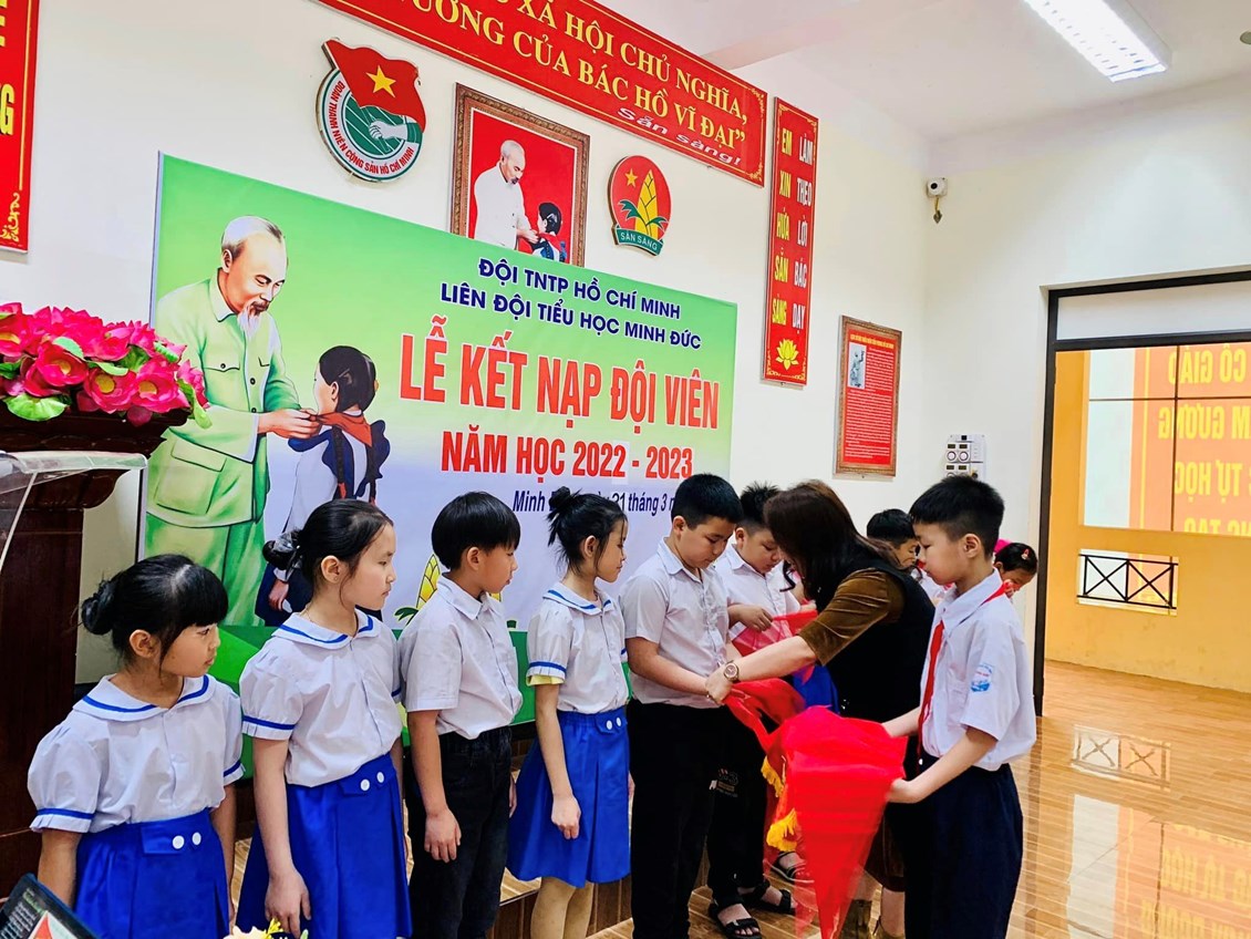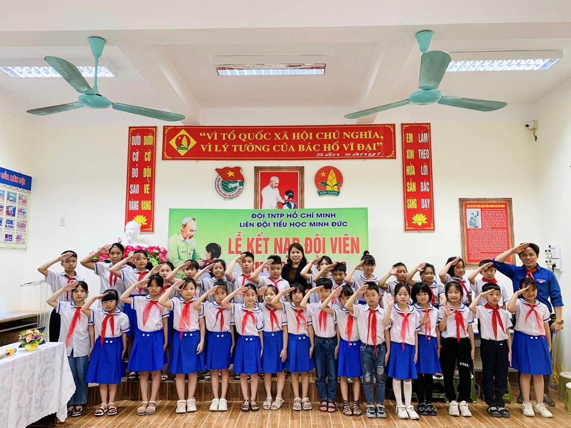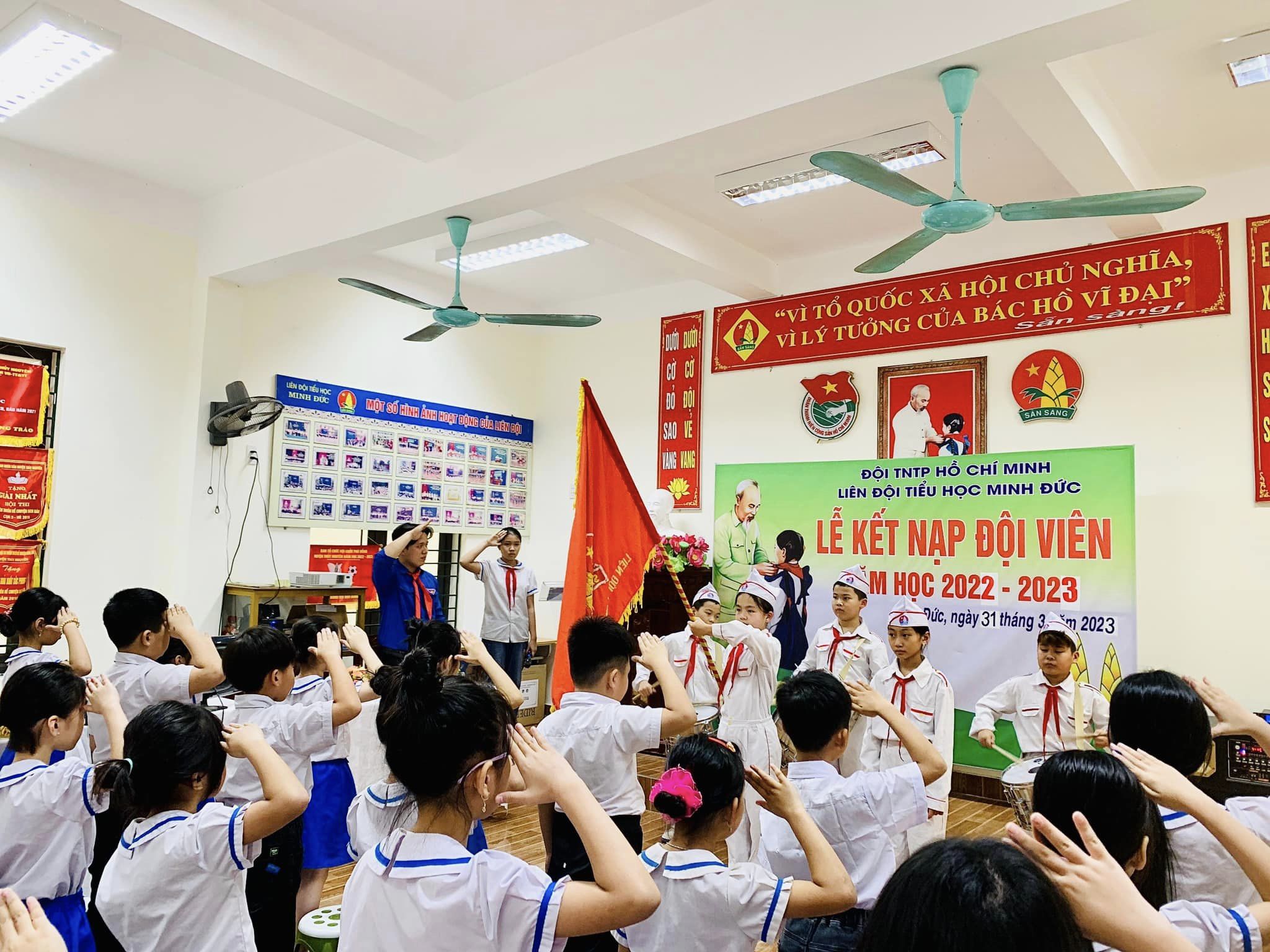 Buổi lễ kết nạp Đội đã diễn ra thật vui tươi và phấn khởi, các em đã được mang trên vai chiếc khăn quàng đỏ thắm và đã cùng nêu vang lời hứa đội viên bằng lòng tự hào. Mong rằng tất cả các em tiếp tục cùng nhau đoàn kết cố gắng phấn đấu vươn lên góp sức xây dựng Liên đội trường Tiểu học Minh Đức ngày càng vững mạnh hơn.