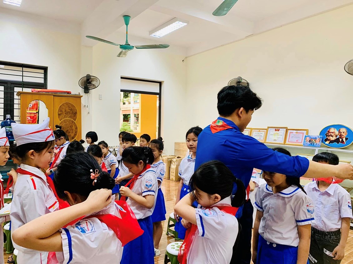 Phát biểu tại buổi Lễ, cô Lại Thị Thuý - Phó Hiệu trưởng nhà trường đã căn dặn các bạn Đội viên mới cần tiếp tục phấn đấu học tập, rèn luyện, thi đua lập nhiều thành tích để trở thành “Con ngoan, trò giỏi”, “Đội viên tốt”, xứng danh “Cháu ngoan Bác Hồ”.