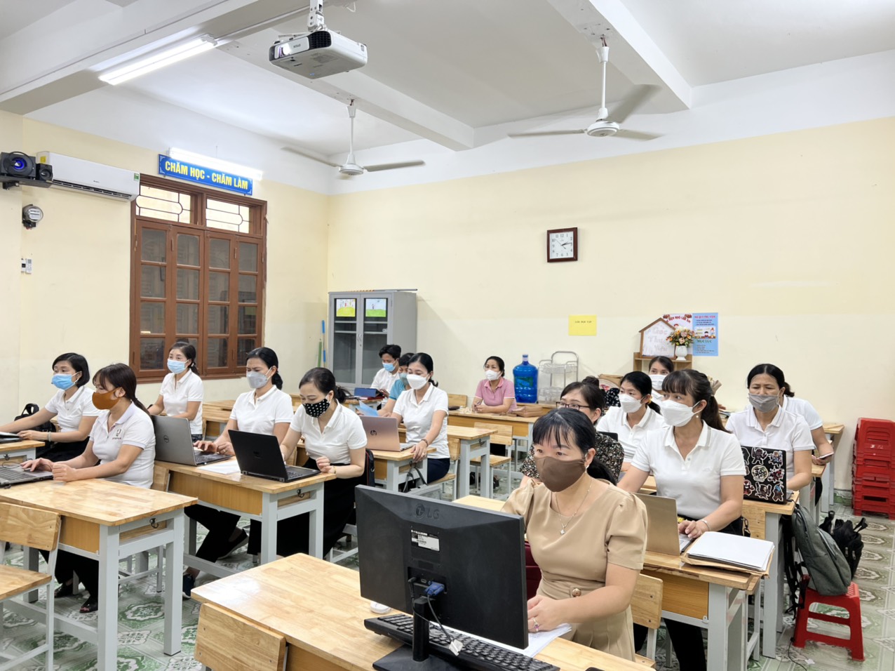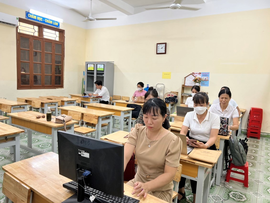 Trường quản lý kết quả học tập của học sinh bằng sổ điểm điện tử, học bạ điện tử; sổ liên lạc điện tử; khuyến khích giáo viên soạn giáo án điện tử; . Tất cả cán bộ, giáo viên tìm tài liệu, nghiên cứu tài liệu tập huấn, học trực tuyến, làm bài kiểm tra đánh giá kết quả tập huấn.
