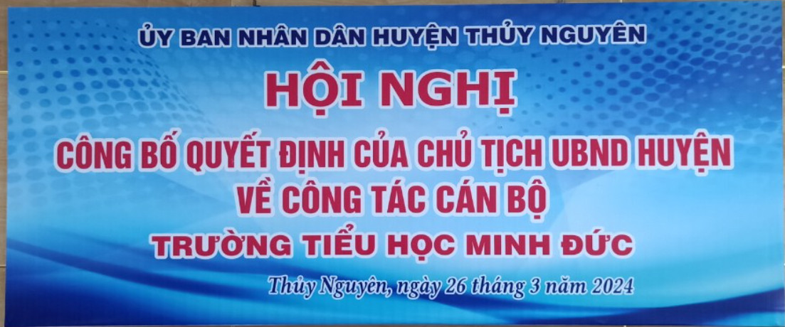 Tại buổi lễ, Bà Bùi Thị Tư - Phó trưởng phòng Nội vụ huyện đã công bố quyết định điều động và bổ nhiệm có thời hạn (5 năm) đối với bà Nguyễn Thị Thanh Hiên - nguyên hiệu trưởng trường TH Gia Đức giữ chức vụ Hiệu trưởng trường TH Minh Đức từ ngày 20/3/2024.