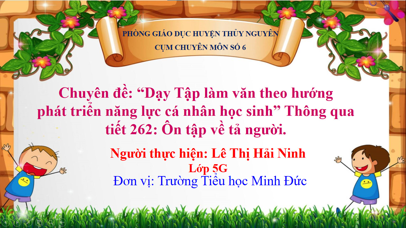 Thực hiện Kế hoạch Bồi dưỡng đội ngũ năm học 2022-2023, sáng ngày 15/4/2023, trường TH Minh Đưc-Thủy Nguyên- Hải Phòng tổ chức chuyên đề " Dạy học phát triển năng lực cá nhân học sinh thông qua giờ học Tiếng Việt 5". Về dự chuyên đề cùng nhà trường, rất vinh dự sự có sự hiện diện đông đủ các thầy cô trong BGH, giáo viên đại diện các trường trong cụm 6 cùng toàn thể các thầy cô giáo trường TH Minh Đức. Giờ dạy minh họa do Cô giáo Lê Thị Hải Ninh và học sinh lớp 5G trường TH Minh Đức đã được cụm chuyên môn số 6 đánh giá cao về việc đổi mới phương pháp dạy học, tiếp cận CTGDPT 2018 nhằm phát triển năng lực cá nhân học sinh. Chuyên đề được xếp loại Xuất sắc.